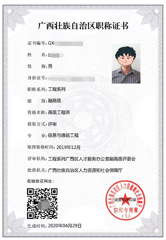 6、證書領(lǐng)取時(shí)間: 廣西各地市職改辦在網(wǎng)上公示職稱評審結(jié)果1個(gè)月后。